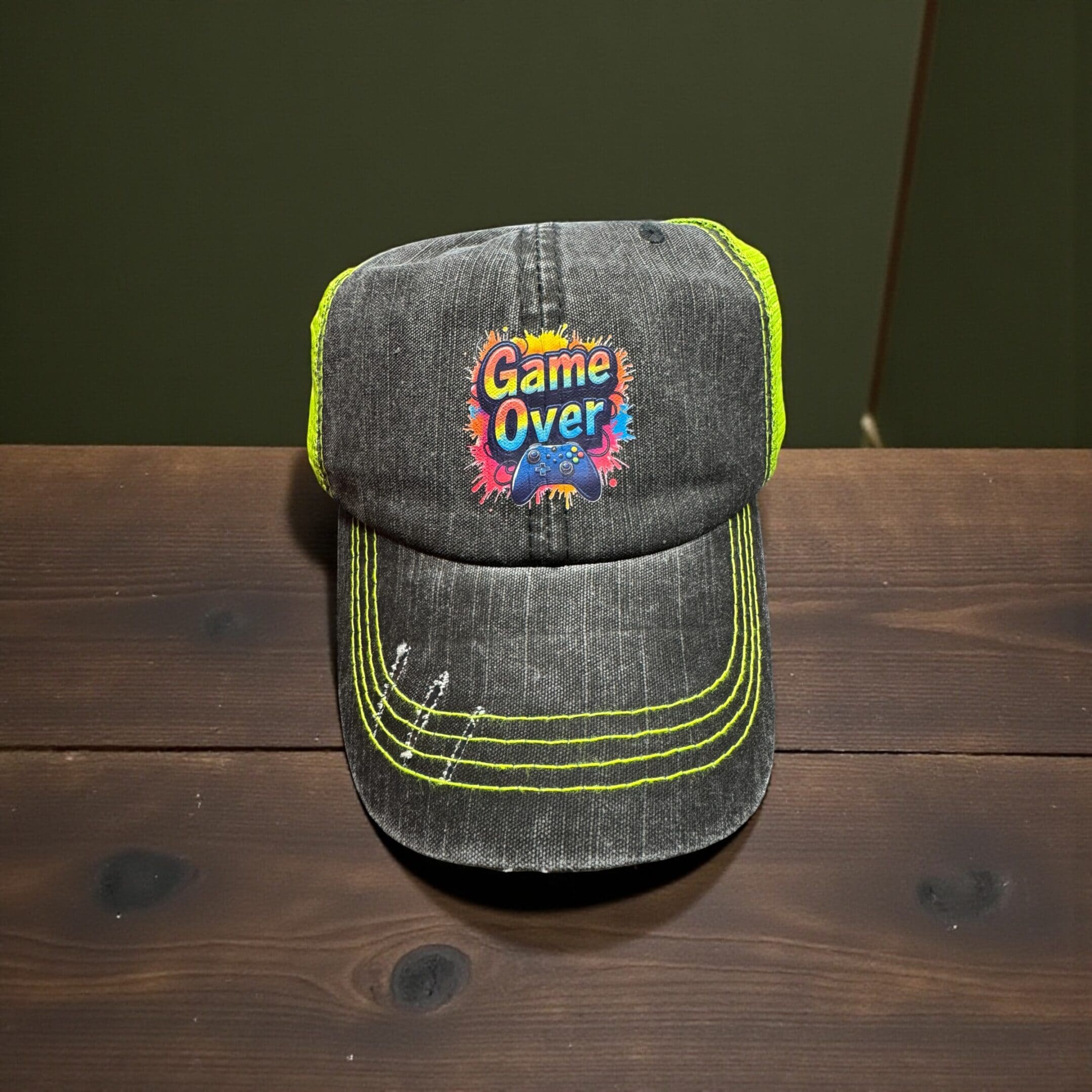 Vintage Distressed Trucker Hats – Game over Green/Gray