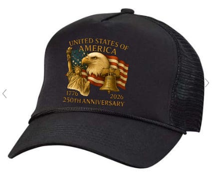 Five-Panel Trucker Cap – 250 Anniversary Black-Red/White